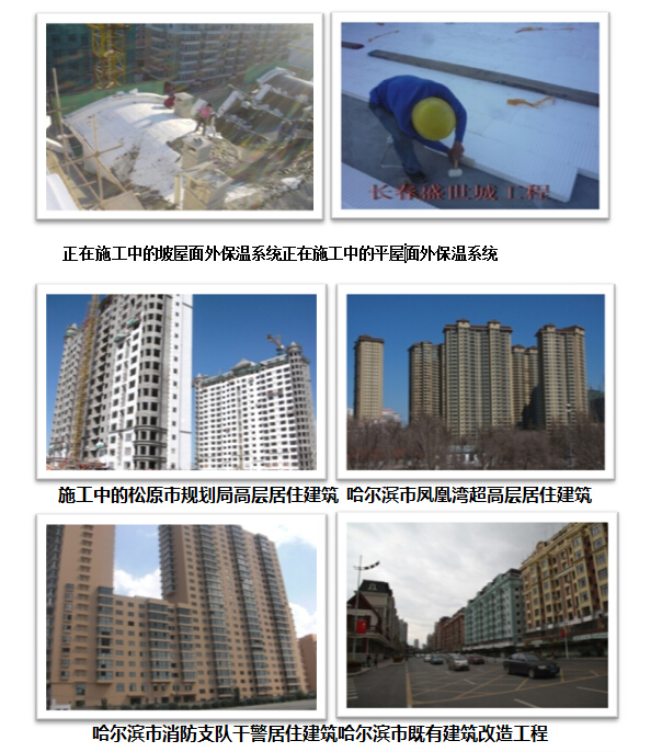 住建部與德國能源署的中德合作“被動式”低能耗居住建筑示范項目秦皇島市在水一方”就是采用了EPS模塊薄抹灰外墻粘貼系統(tǒng);2011年~2014年哈爾濱市既有建筑裝飾與節(jié)能改造工程均全部使用了該技術(shù)。